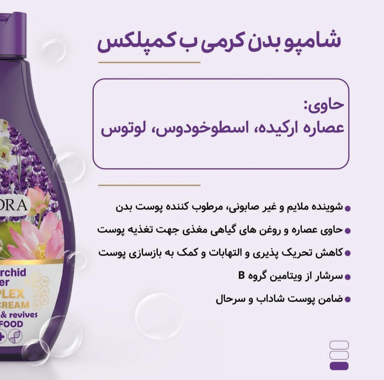 ویژگی های شامپو بدن کرمی نیلوفر آبی و ارکیده آدرا