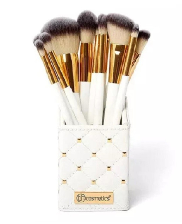 ست براش ۱۲ تایی استند دار بی اچ کازمتیک مدل مکعبی چرمی