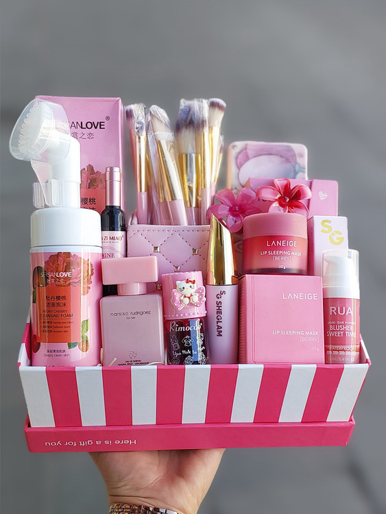 پک هدیه مناسبتی آرایشی و بهداشتی رنگ صورتی