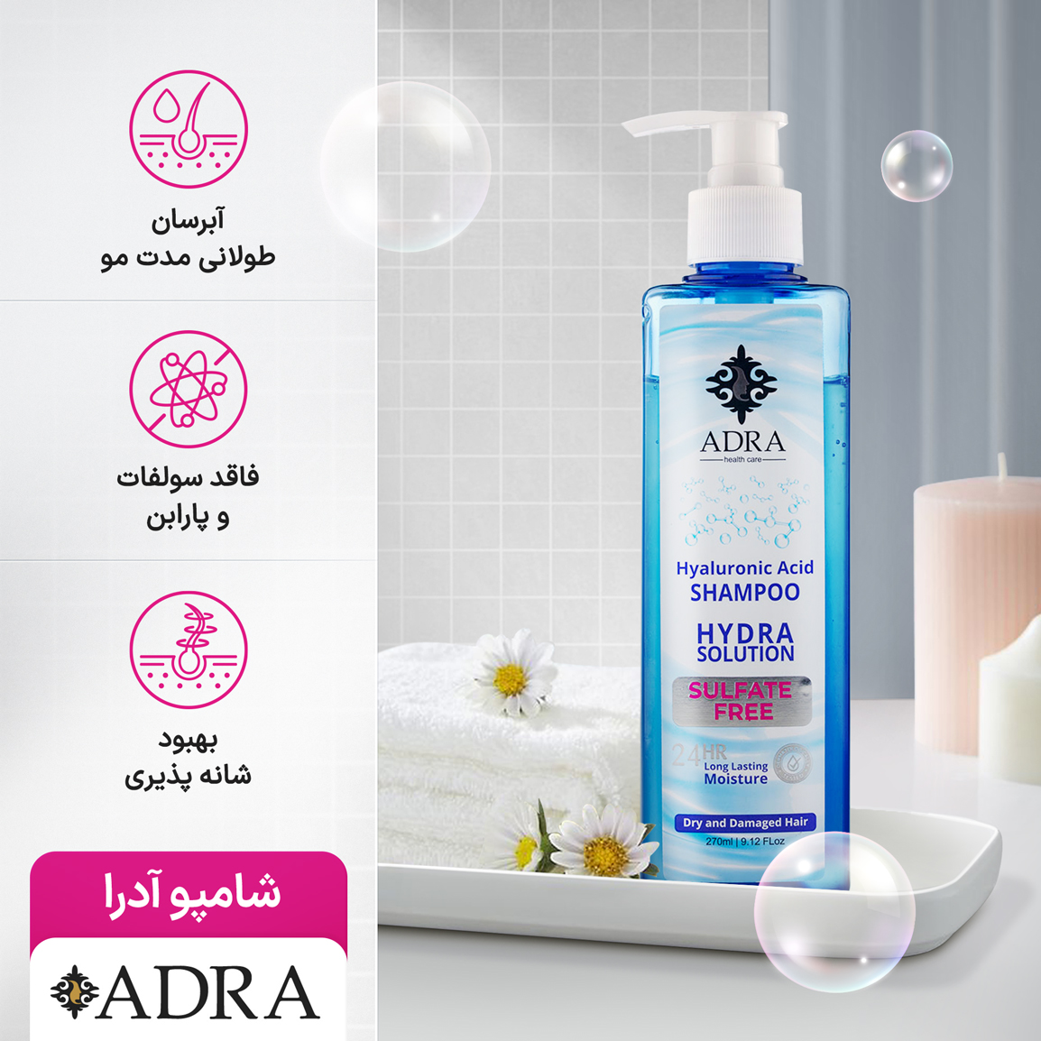 شامپو بدون سولفات حاوی هیالورونیک اسید برند آدرا حجم۲۷۰میل