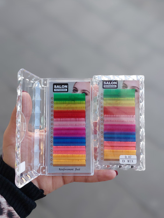 پالت مژه اکستنشن رنگی فر دی سالن salon mixd 0/07 شامل ۸ رنگ