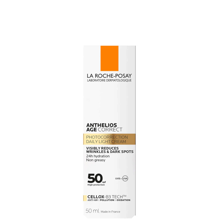 کرم ضد آفتاب ضد لک SPF50 آنتلیوس ایج کارکت لاروش پوزای به کاهش لکه های پوستی کمک می کند و به علاوه مانع از به وجود آمدن لک های جدید می شود. این کرم ضد پیری از پوست در برابر اشعه های مضر UVA و UVB محافظت می کند و محافظت گسترده ای از پوست را به همراه دارد. این فرمول ایده آل برای انواع پوست ها و پوست های حساس مناسب می باشد و به بهبود ظاهر چین و چروک، لکه های تیره و خاصیت ارتجاعی پوست کمک می کند.